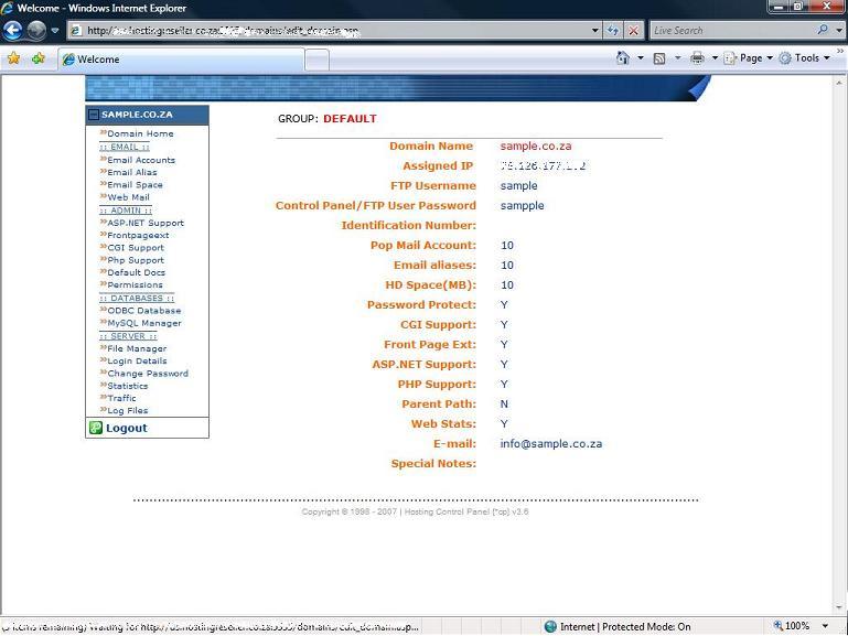 Home   Reseller info   Package info   Control Panel   Domains  Servers  Contact us